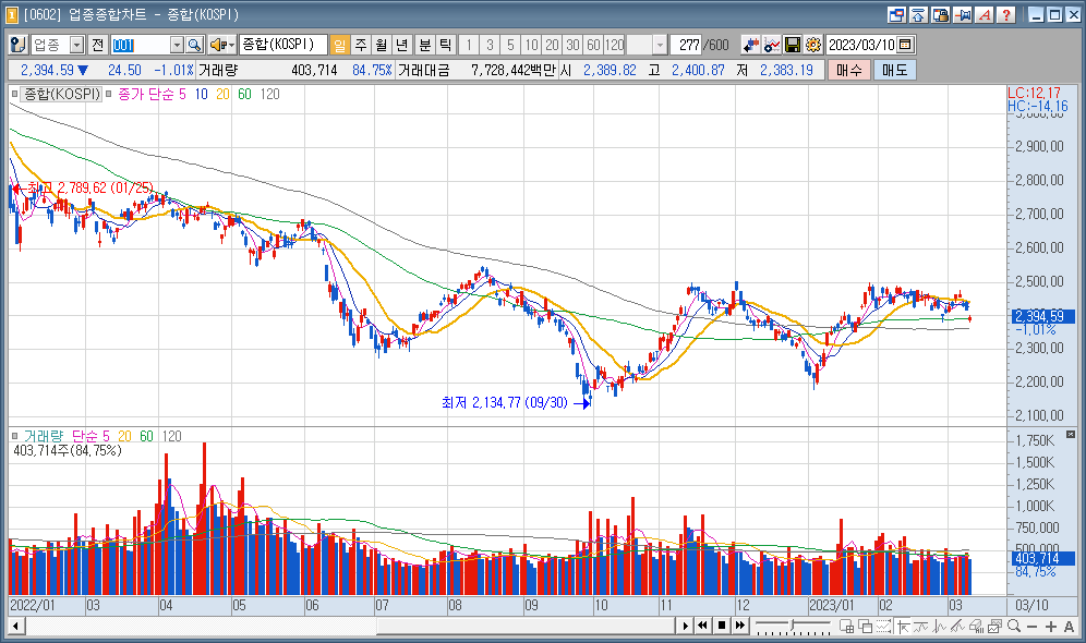 코스피 : 2,394.59 ▼24.50 1.01%