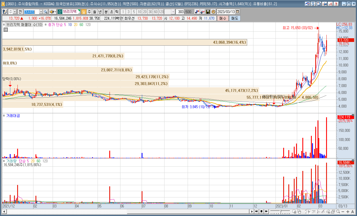 | 4 | 브리지텍 | 16.07% | AI | MS 챗GPT 돌입후 이용자 급증, 챗GPT 관련 |