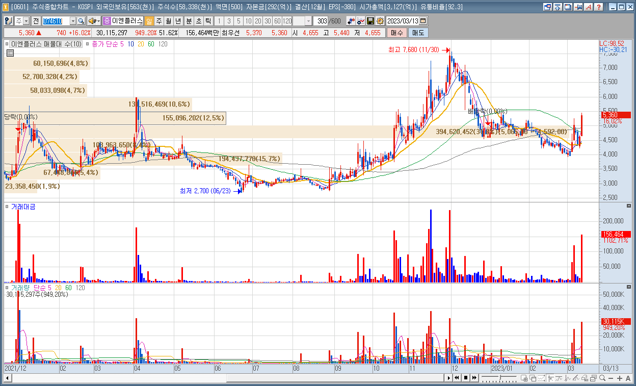| 5 | 이엔플러스 | 16.02% | 2차전지 | '인터배터리 2023' 참가, 드라이 전극 공개 |