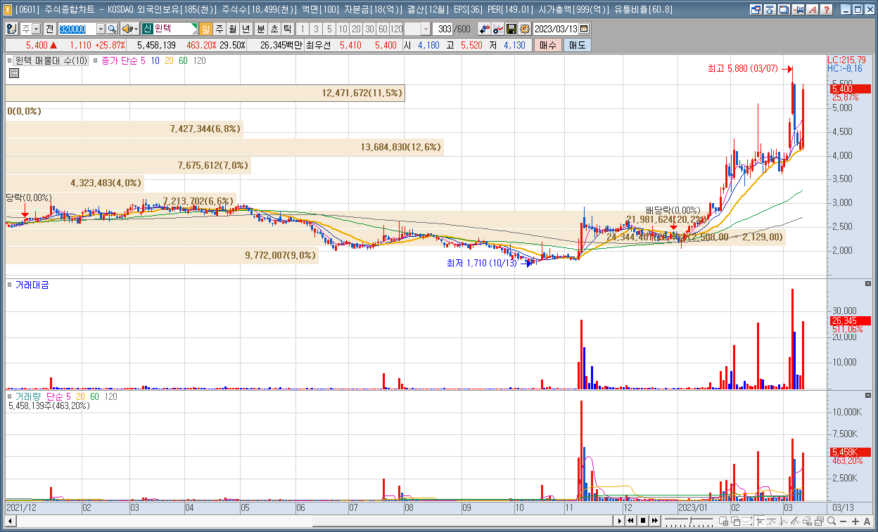 | 1 | 윈텍 | 25.87% | 반도체 | - |