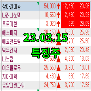 | 23.03.14 특징주 (10) | 2023.03.14 |