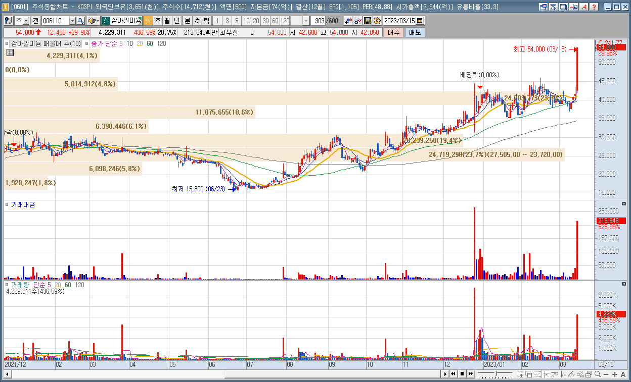| 1 | 삼아알미늄 | 29.96% | 2차전지(소재/부품) | 롯데알미늄 미승인 기기로 제조한 양극박 고객사에 납품 논란 |