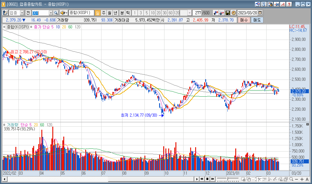 코스피 : 2,379.20 ▼16.49 0.69%