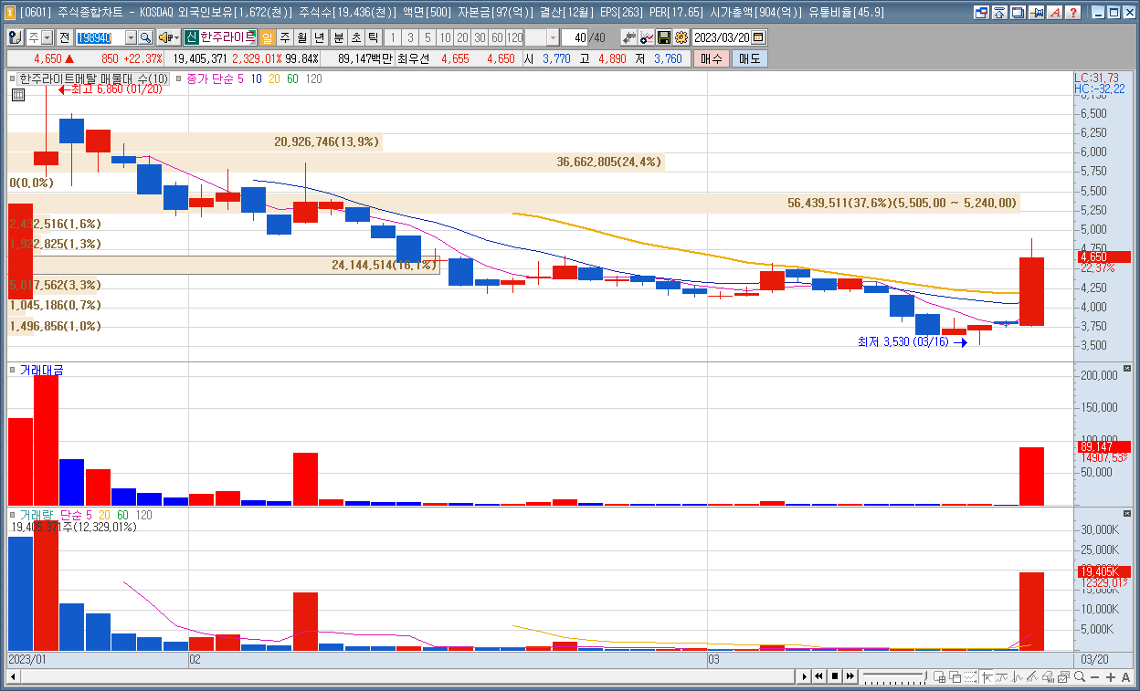 | 3 | 한주라이트메탈 | 22.37% | 비철금속 | 지난해 사상 최대 매출액 달성 |