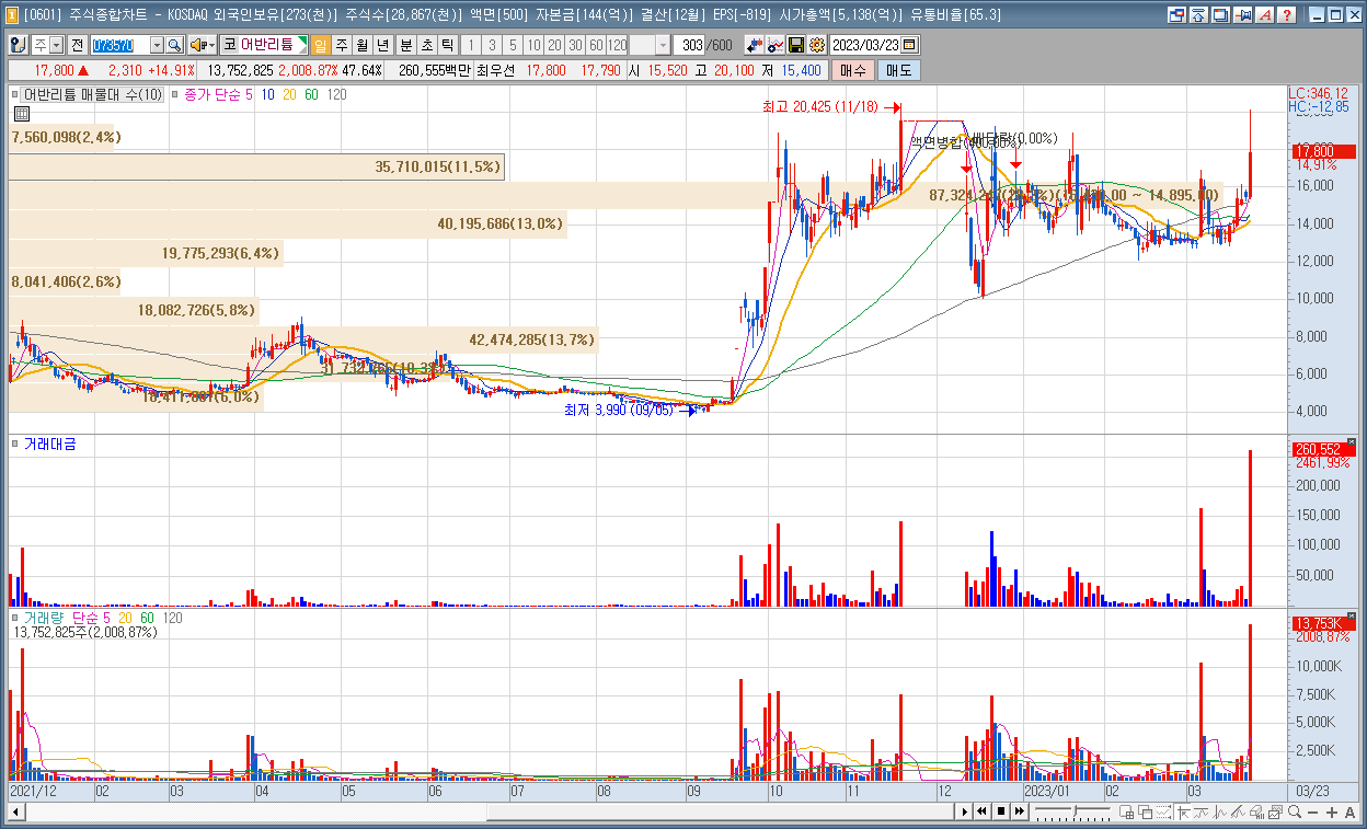 | 5 | 어반리튬 | 14.91% | 2차전지 | 각국의 광물 자원 확보에 따른 2차전지 관련주 관심 |