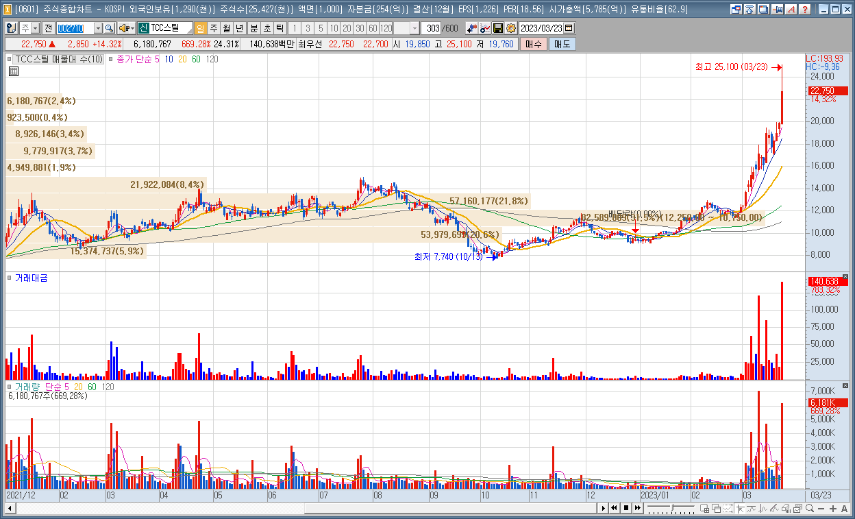 | 6 | TCC스틸 | 14.32% | 2차전지 | 각국의 광물 자원 확보에 따른 2차전지 관련주 관심 |