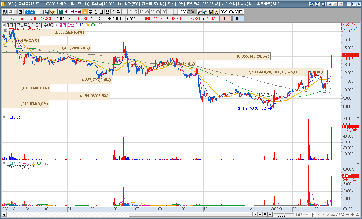 | 3 | 에이테크솔루션 | 18.33% | 자율주행 | 삼성전자, 자율주행 자동차용 반도체 생산 실적 개선 기대감 |