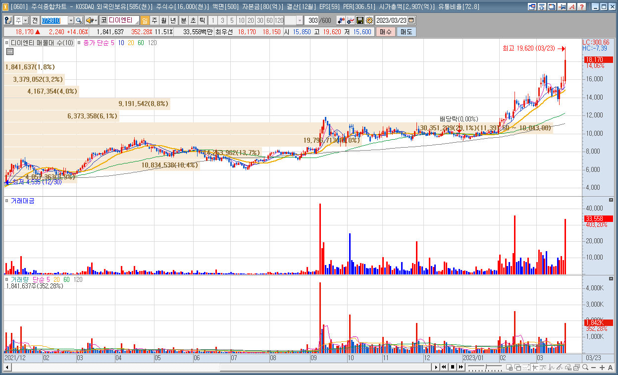 | 2 | 디에이테크놀로지 | 21.16% | 2차전지 | 각국의 광물 자원 확보에 따른 2차전지 관련주 관심 |