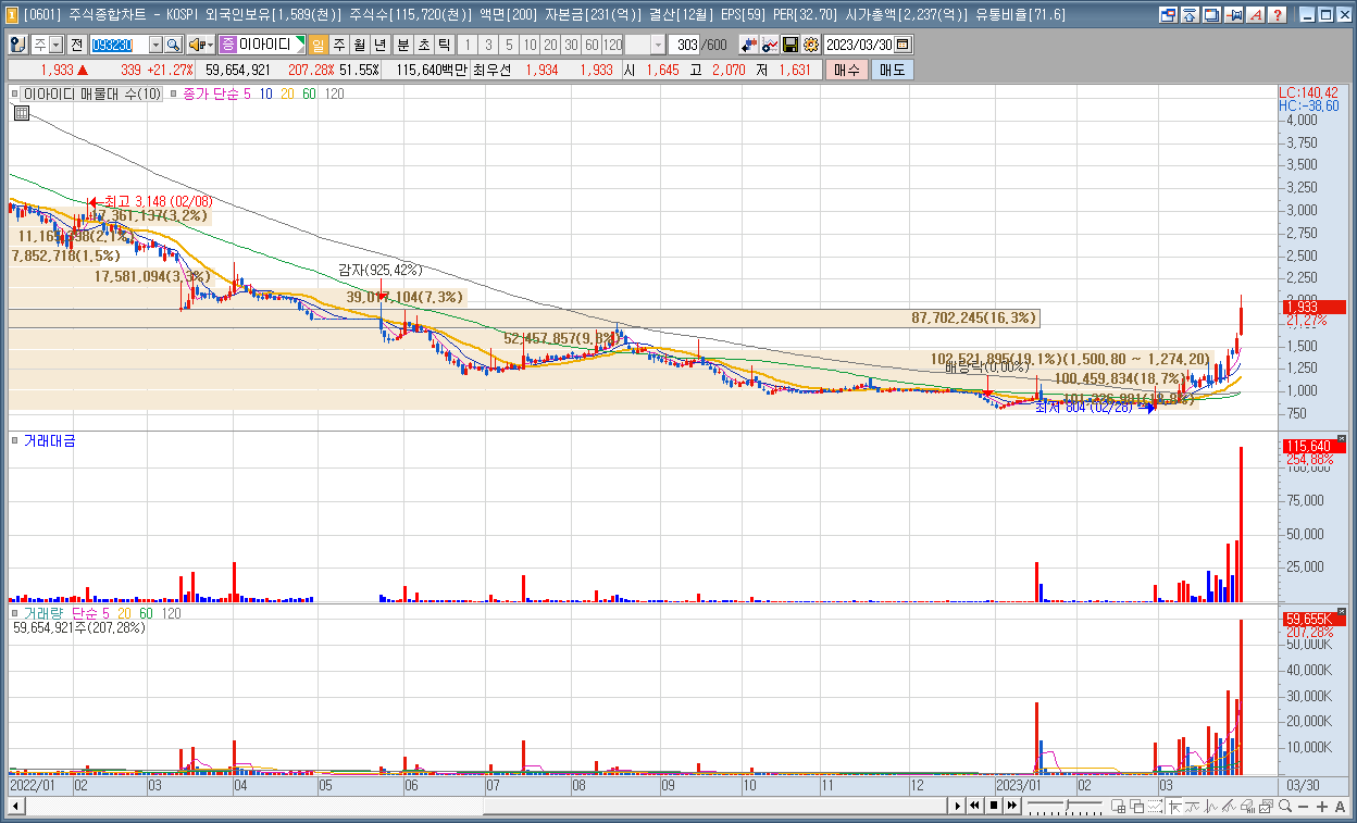 | 5 | 이아이디 | 21.27% | 3D 낸드 | 자회사 2차전지 사업 신설로 실적이 급성장했다는 소식 |