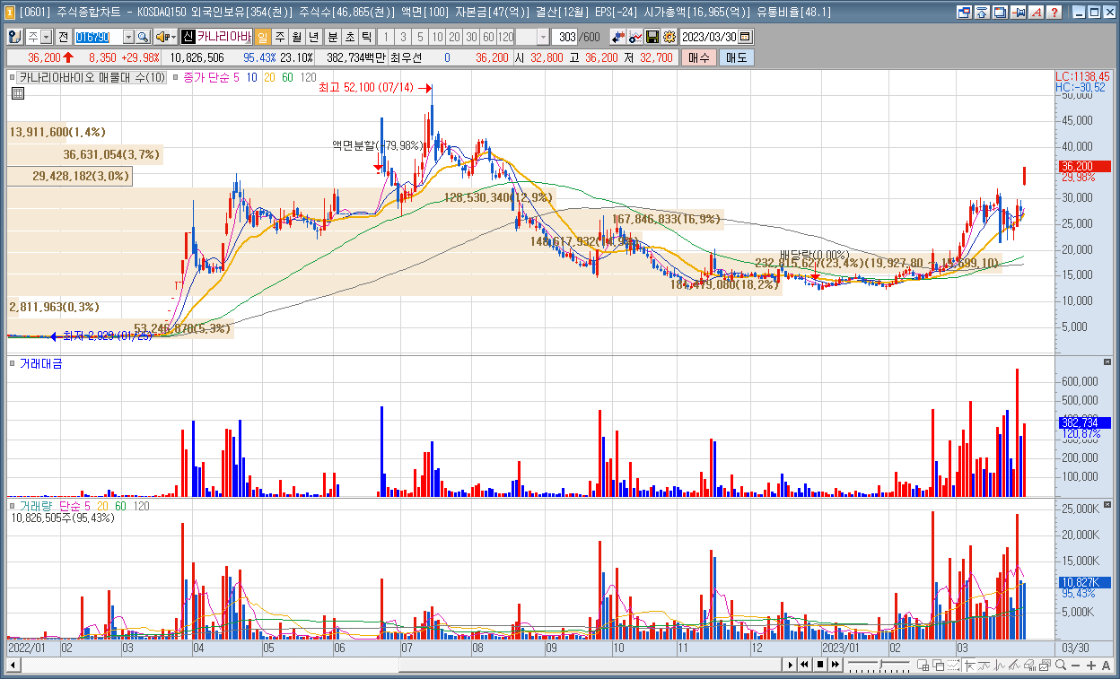 | 1 | 카나리아바이오 | 29.98% | 면역항암제 | 경기 포천서 아프리카돼지열병 발생, 적정 의견을 받은 감사보고서 늦은 제출 |