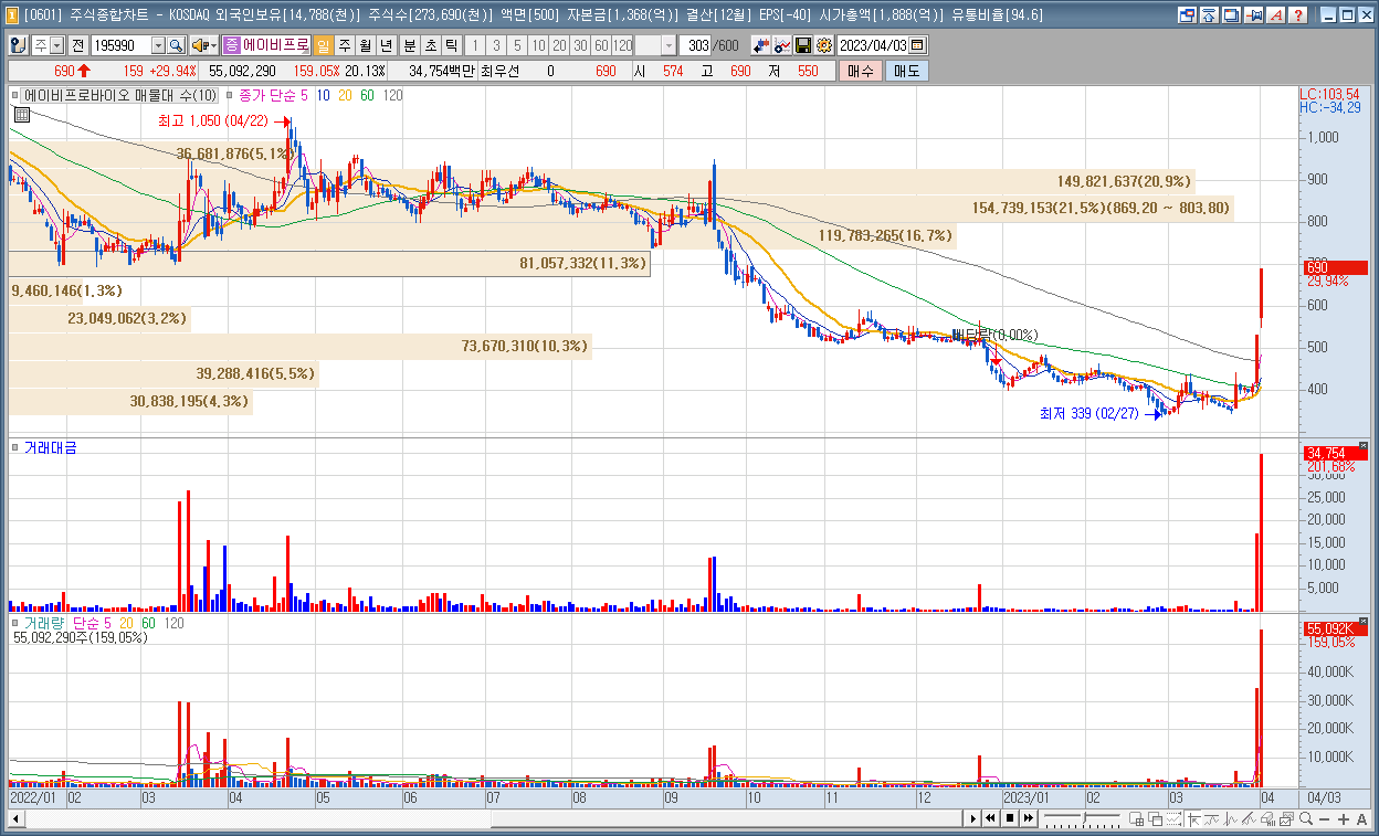 | 3 | 에이비프로바이오 | 29.94% | 공작기계 | - |