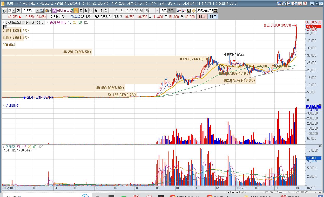 | 6 | 하이드로리튬 | 24.06% | 리튬 | 미 IRA 발표, 2차전지 사업에 우호적 판단 |