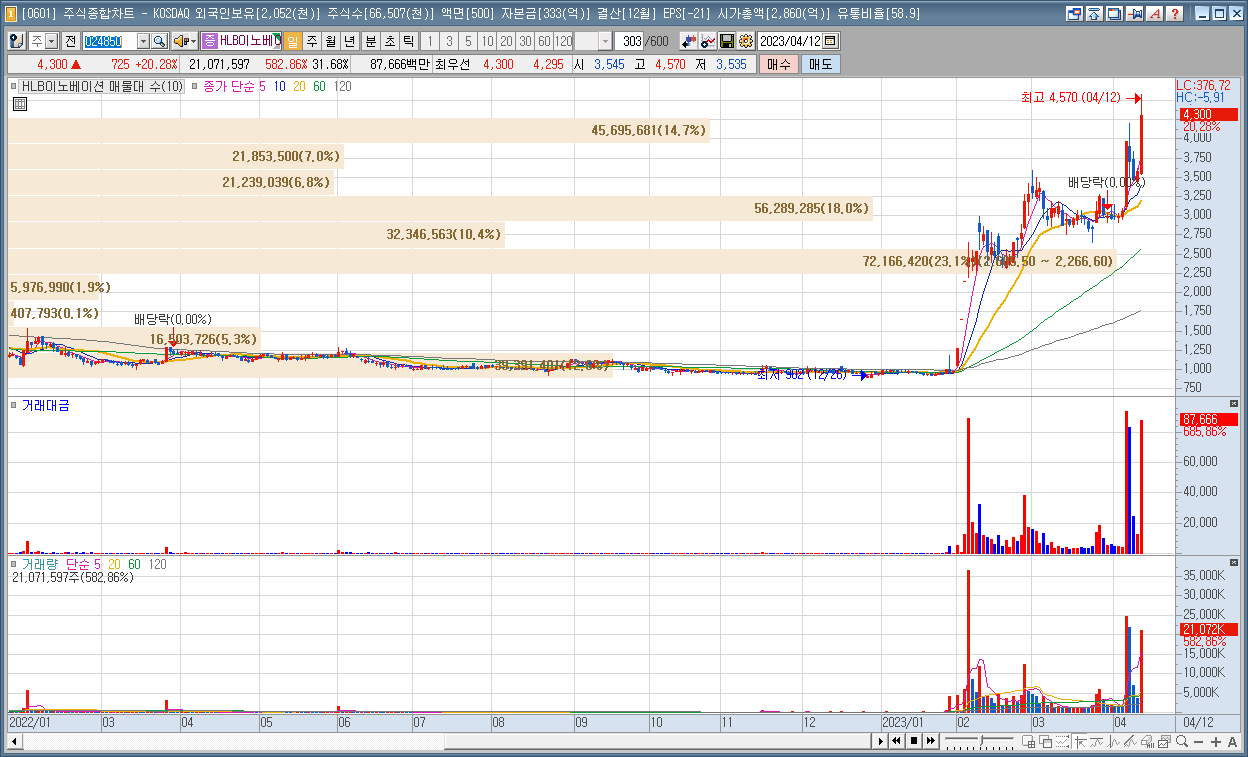 | 8 | HLB이노베이션 | 20.28% | 반도체재료 | 2027년까지 매출액을 2배 늘리겠다고 밝힘 |