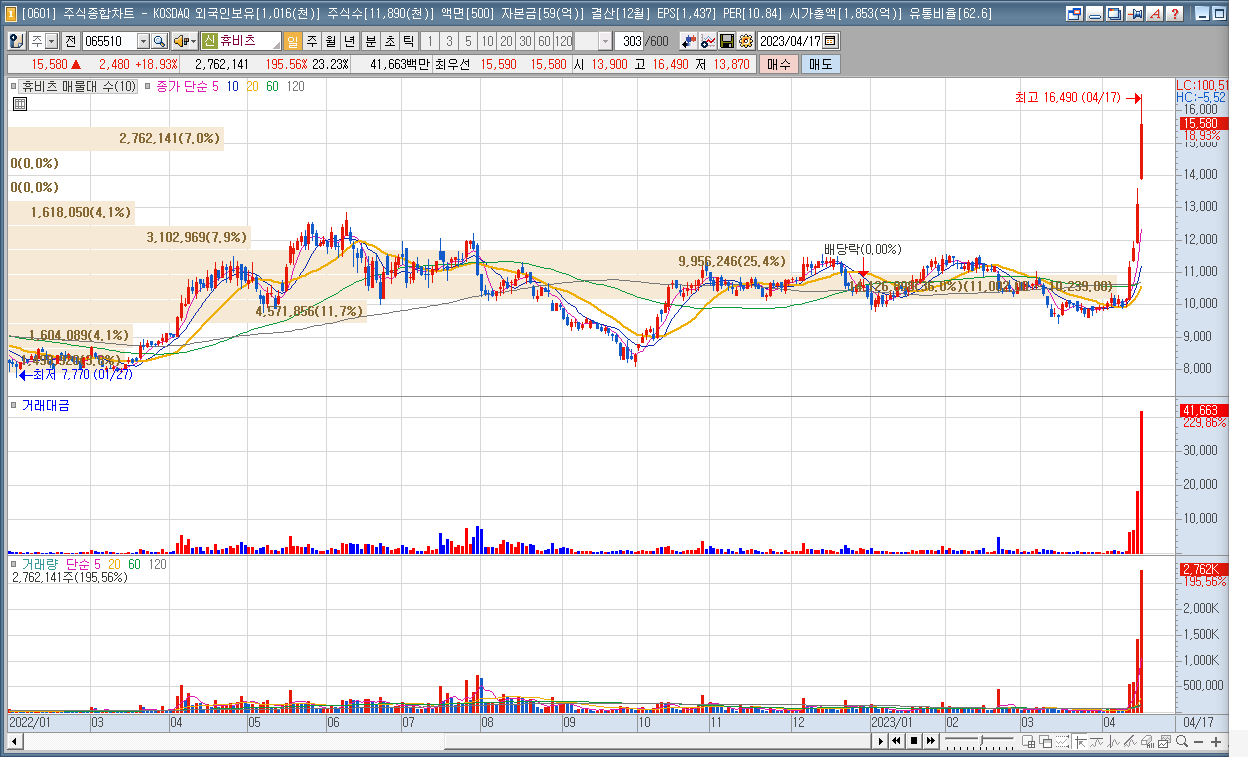 | 5 | 휴비츠 | 18.93% | 황사/미세먼지 | 52주 신고가, 지속적인 황사/미세먼지 발생 |