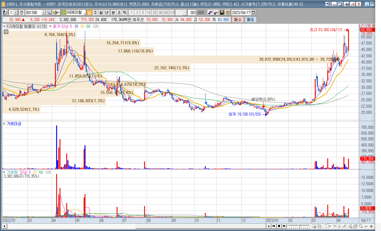 | 6 | KG케미칼 | 18.34% | 수자원 | 52주 신고가 |