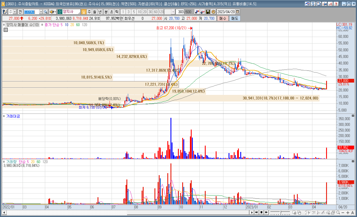 | 3 | 양지사 | 29.81% | 남북경협 | 장기 횡보에 따른 매수세 유입 |