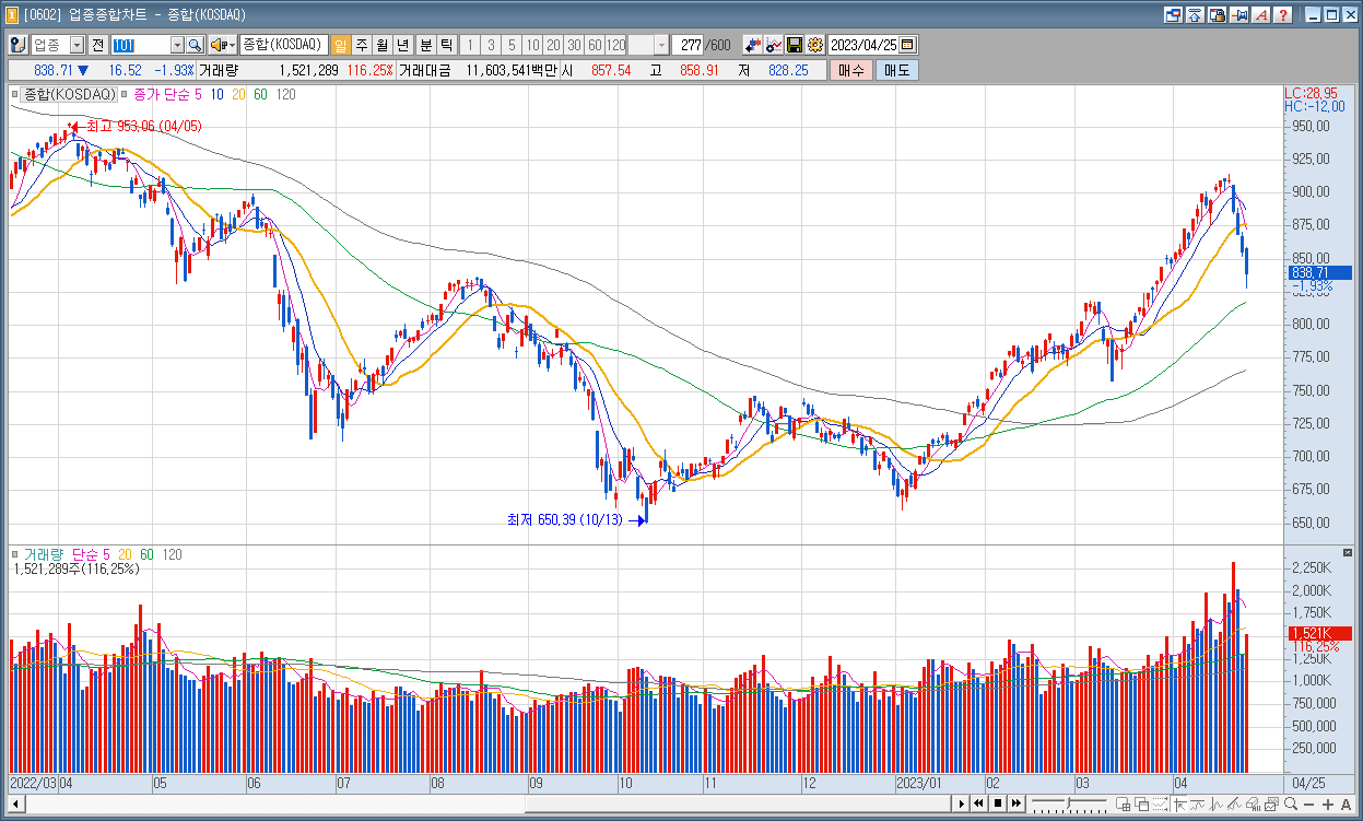 코스닥 : 838.71 ▼16.52 1.93%
