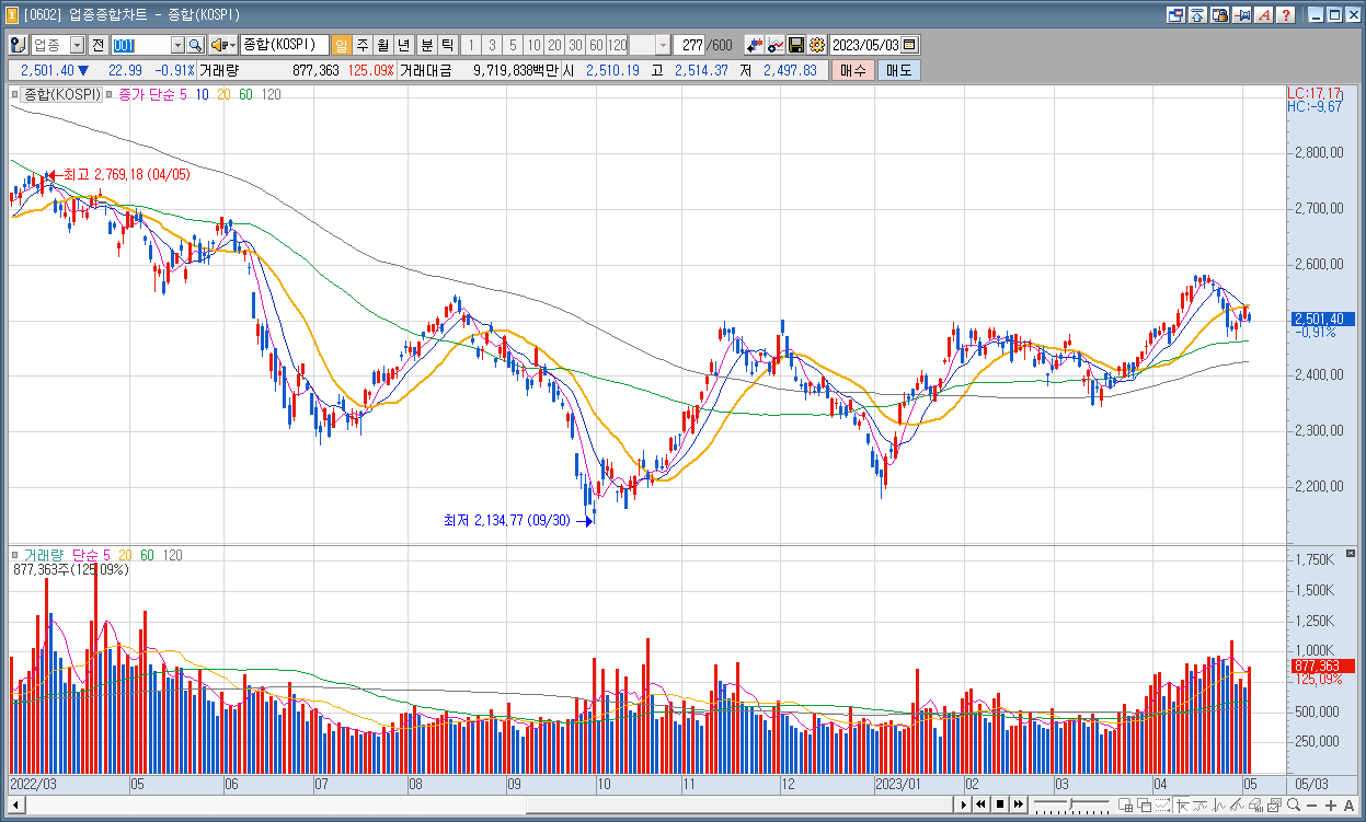 코스피 : 2,501.40 ▼22.99 0.91%
