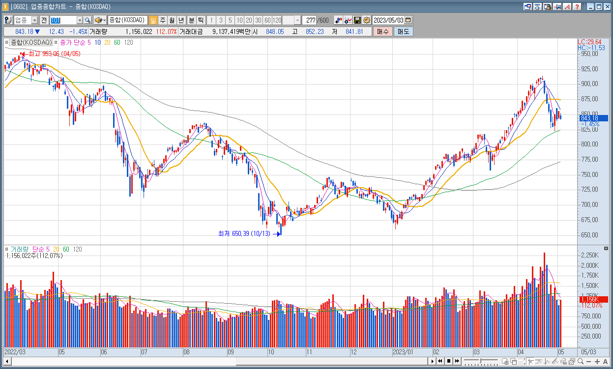 코스닥 : 843.18 ▼12.43 1.45%
