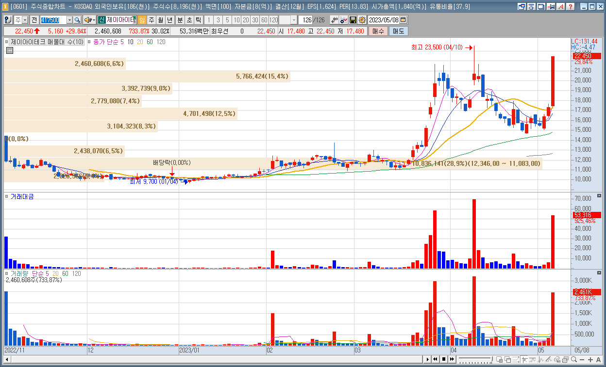 | 2 | 제이아이테크 | 29.84% | 반도체재료 | 주당 3주 무상증자 결정 |