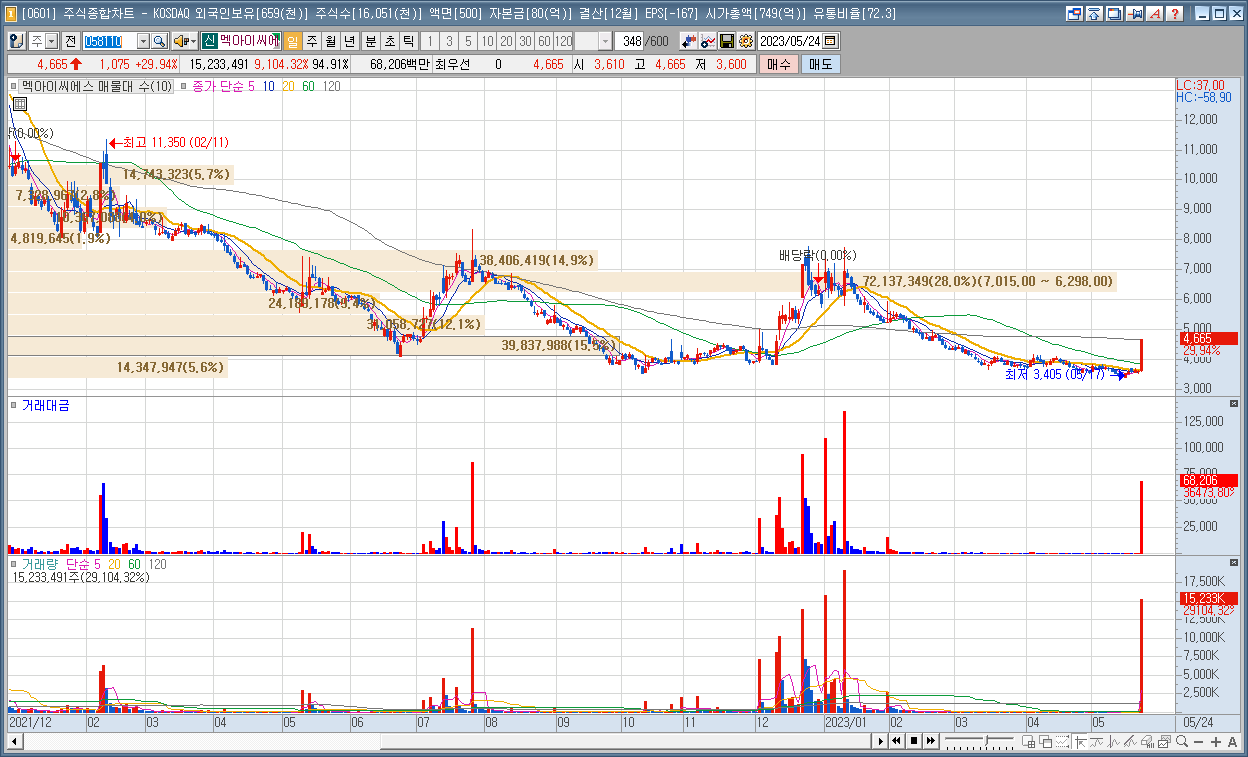 | 1 | 멕아이씨에스 | 29.94% | 의료기기 | 중국 코로나19 재확산 전망 소식 |