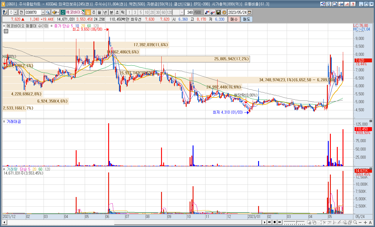 | 7 | 사조동아원 | 15.67% | 사료 | 러시아 흑해곡물협정 이행을 막고있다는 외신 보도, 엘니뇨로 인한 식량 문제 소식 |