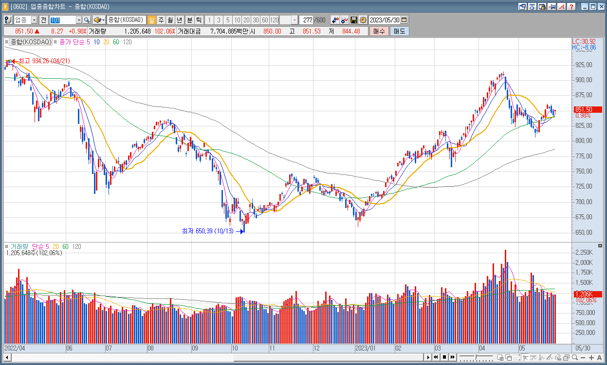 코스닥 : 851.50 ▲8.27 0.98%