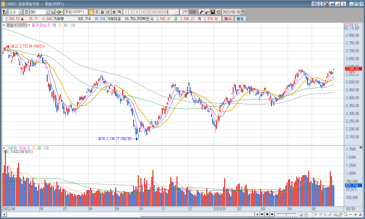 코스피 : 2,585.52 ▲26.71 1.04%