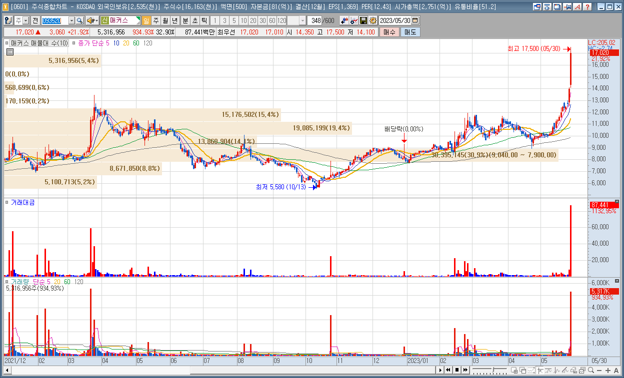 | 6 | 매커스 | 21.92% | 시스템반도체 | 엔비디아 주가 폭등으로 인한 영향 |