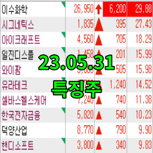 | 23.05.30 특징주 (12) | 2023.05.30 |