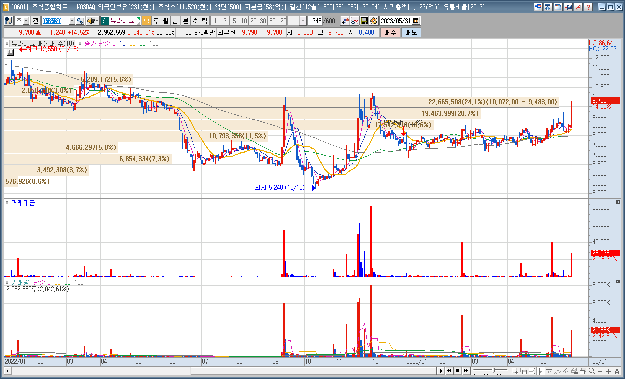 | 6 | 유라테크 | 14.52% | 자동차부품 | - |