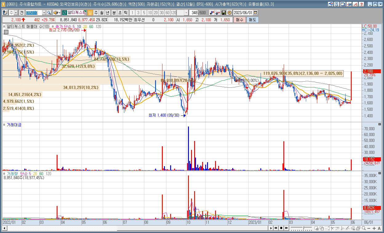 | 3 | 알티캐스트 | 29.79% | 전기차충전소 | 외국인 20거래일 매수 |