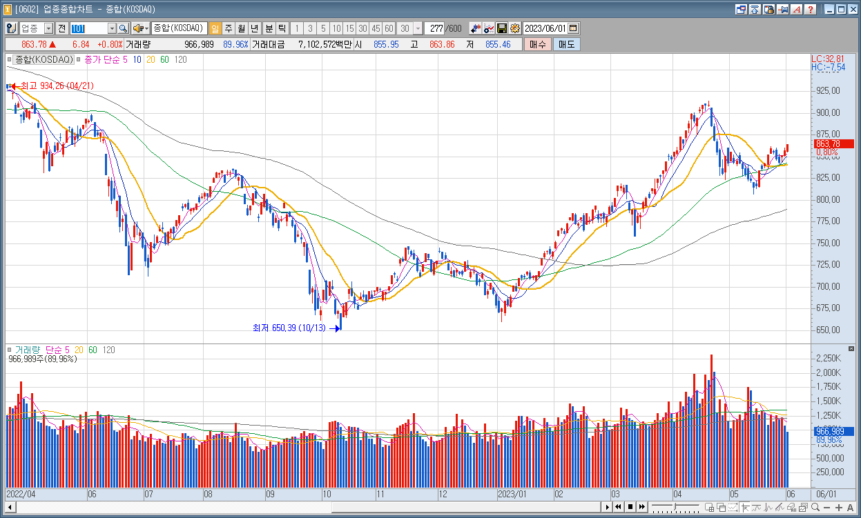 코스닥 : 863.78 ▲6.84 0.80%