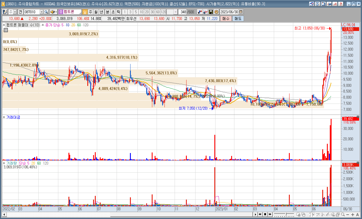 | 7 | 펨트론 | 14.93% | 2차전지 | - |