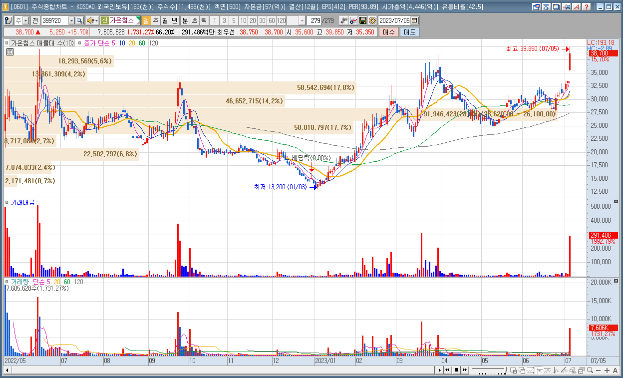 | 9 | 가온칩스 | 15.70% | 시스템반도체 | 삼성전자, 국내 팹리스 업계와 손잡고 인공지능 반도체 등 국내 시스템 반도체 생태계를 육성한다는 소식 |