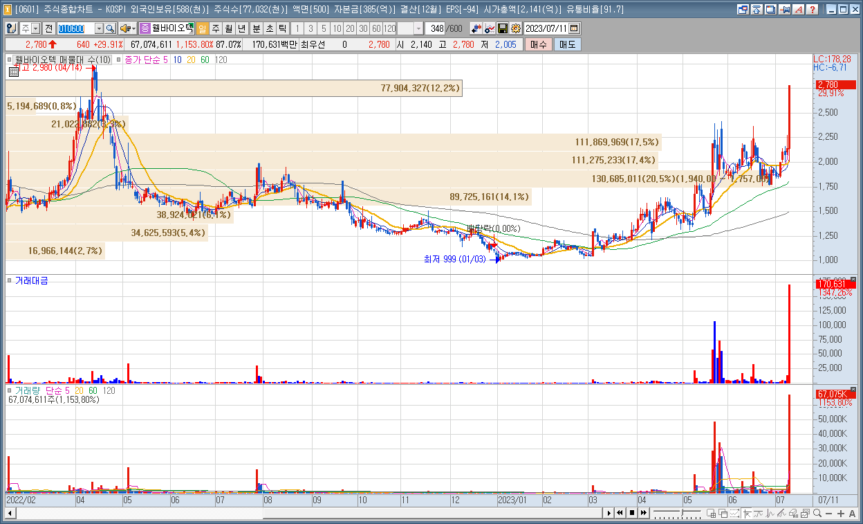 | 2 | 웰바이오텍 | 29.91% | 전기차충전소 | 지난해 말 짐바브웨 정부, '기초 광물 수출 규제법' 시행 이후 웰바이오텍 예외적으로 최초 허가 기업 선정 소식 |