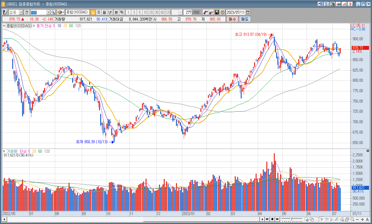 코스닥 : 878.73 ▲18.38 2.14%