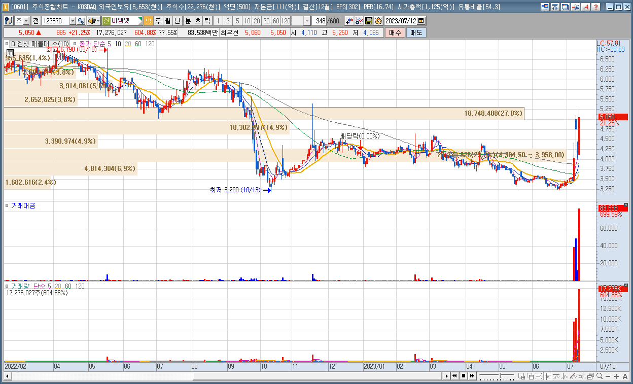 | 5 | 이엠넷 | 21.25% | 광고 | 스레드의 계속되는 흥행에 광고주 부각 |