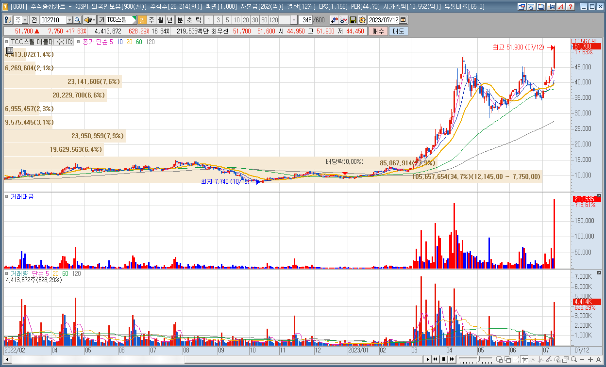 | 6 | TCC스틸 | 17.63% | 2차전지 | 조선주 호황 소식에 철강 관련주 부각 |