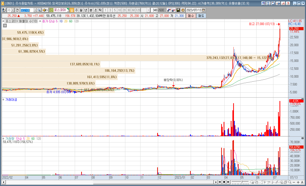 | 7 | 포스코DX | 17.44% | 클라우드 | 유가증권시장 이전 상장 검토 소식 |