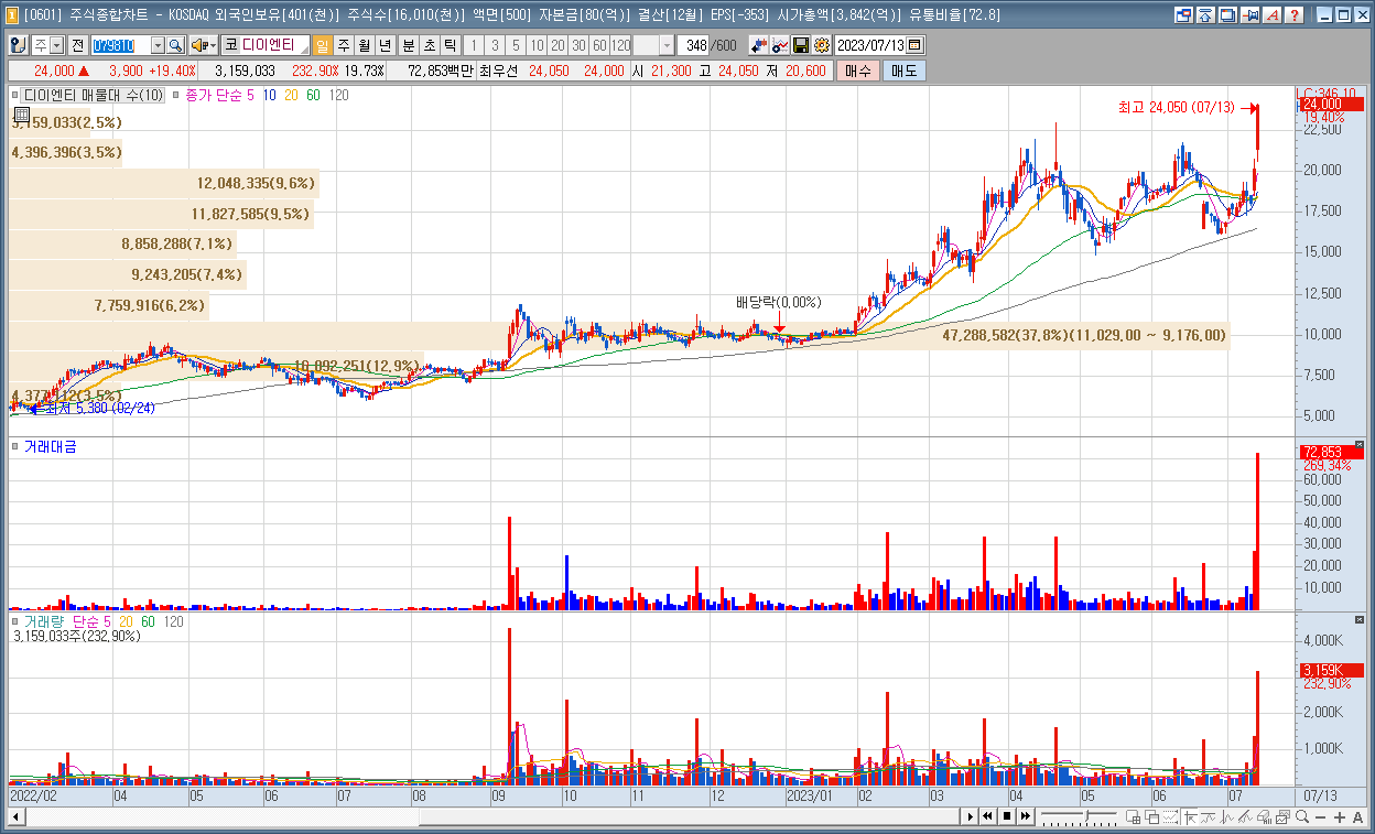 | 5 | 디이엔티 | 19.40% | 플렉서블 디스플레이 | 2차전지 사업 확대에 대한 기대감 |
