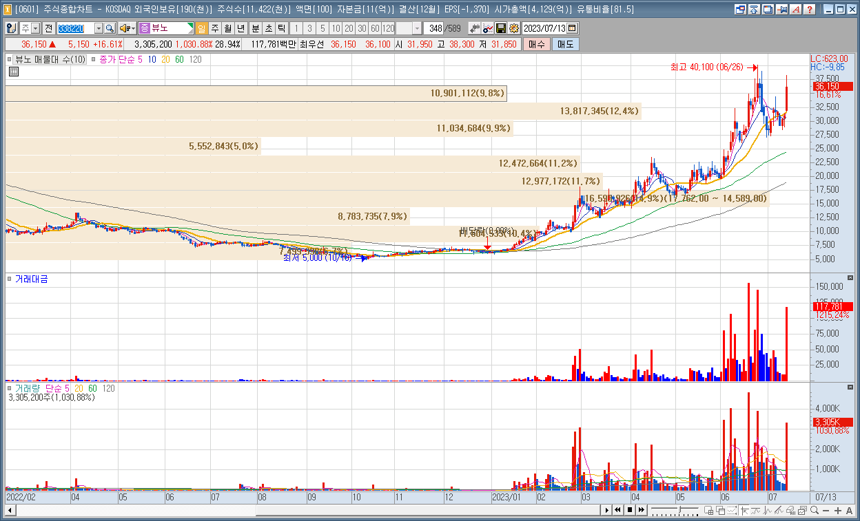| 8 | 뷰노 | 16.61% | 인공지능 | 네덜란드 암스테르담에서 열리는 알츠하이머 분야 세계 최대 글로벌 학회 AAIC 참가 AI 기반 뇌 정량화 의료기기 연구결과 발표 예정 |