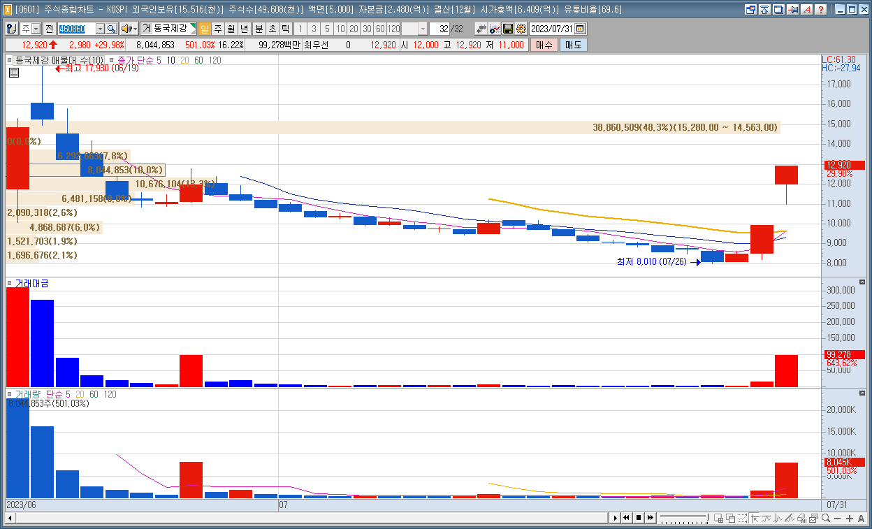 | 1 | 동국제강 | 29.98% | 철강 | 분할 후 첫 실적 발표 호실적 소식 |