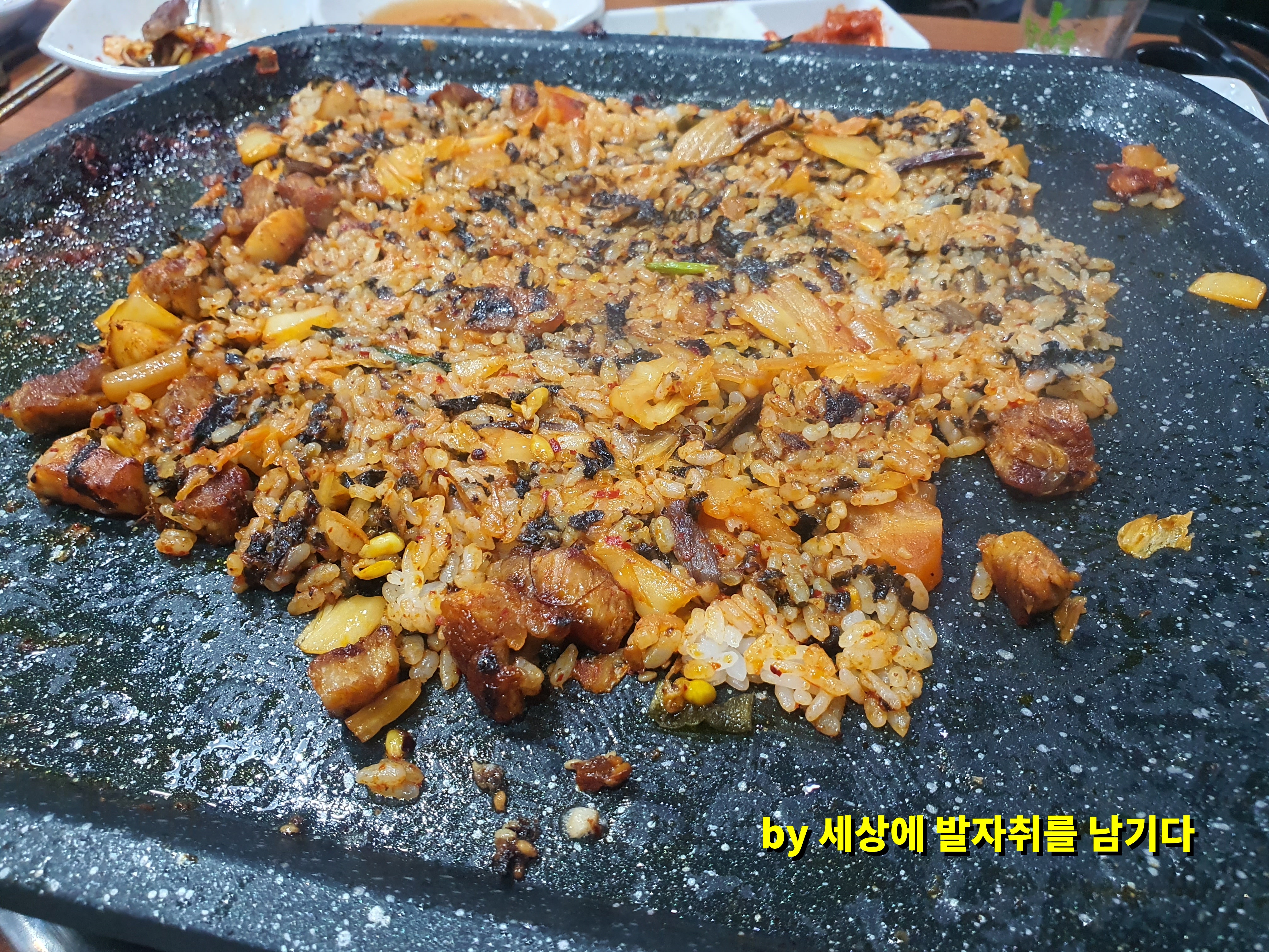 고기를 다 먹고 살짝 남겨 놓았다. 메뉴판에는 없었지만 셀프볶음밥이 된다고 한다.