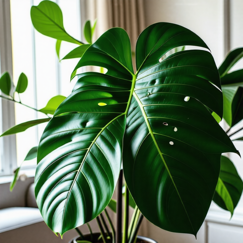 몬스테라는 큰 잎과 독특한 구멍이 있는 형태로 유명해요. 이 구멍은 식물이 자생하는 환경에서 빛을 더 잘 받을 수 있도록 도와주고, 바람에 의해 잎이 손상되는 것을 방지하는 역할도 해요. 몬스테라는 보통 1.5m에서 2.5m까지 자랄 수 있으며, 실내에서 기를 경우에는 그 크기가 다소 작아질 수 있어요. 몬스테라의 잎은 두껍고 광택이 나며, 건강한 몬스테라는 깊은 초록색을 띠고 있어요.
