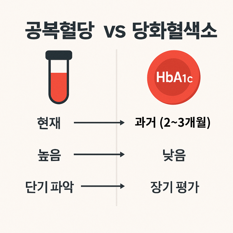 | 🕒 측정 시점 | 특정 시간 (식전) | 2~3개월 평균 |