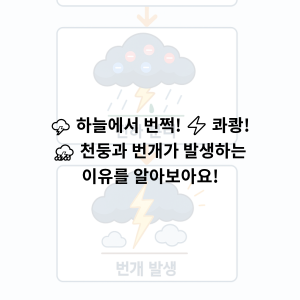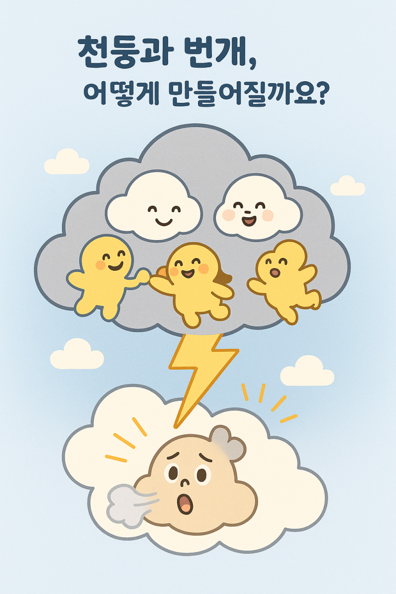 우리 친구들~! 하늘에서 번쩍! ✨ 번개가 치고, 콰쾅! 💥 천둥이 울릴 때 무섭지 않나요? 그런데 이건 무서운 게 아니라 아주 신기한 자연의 놀이라구요!