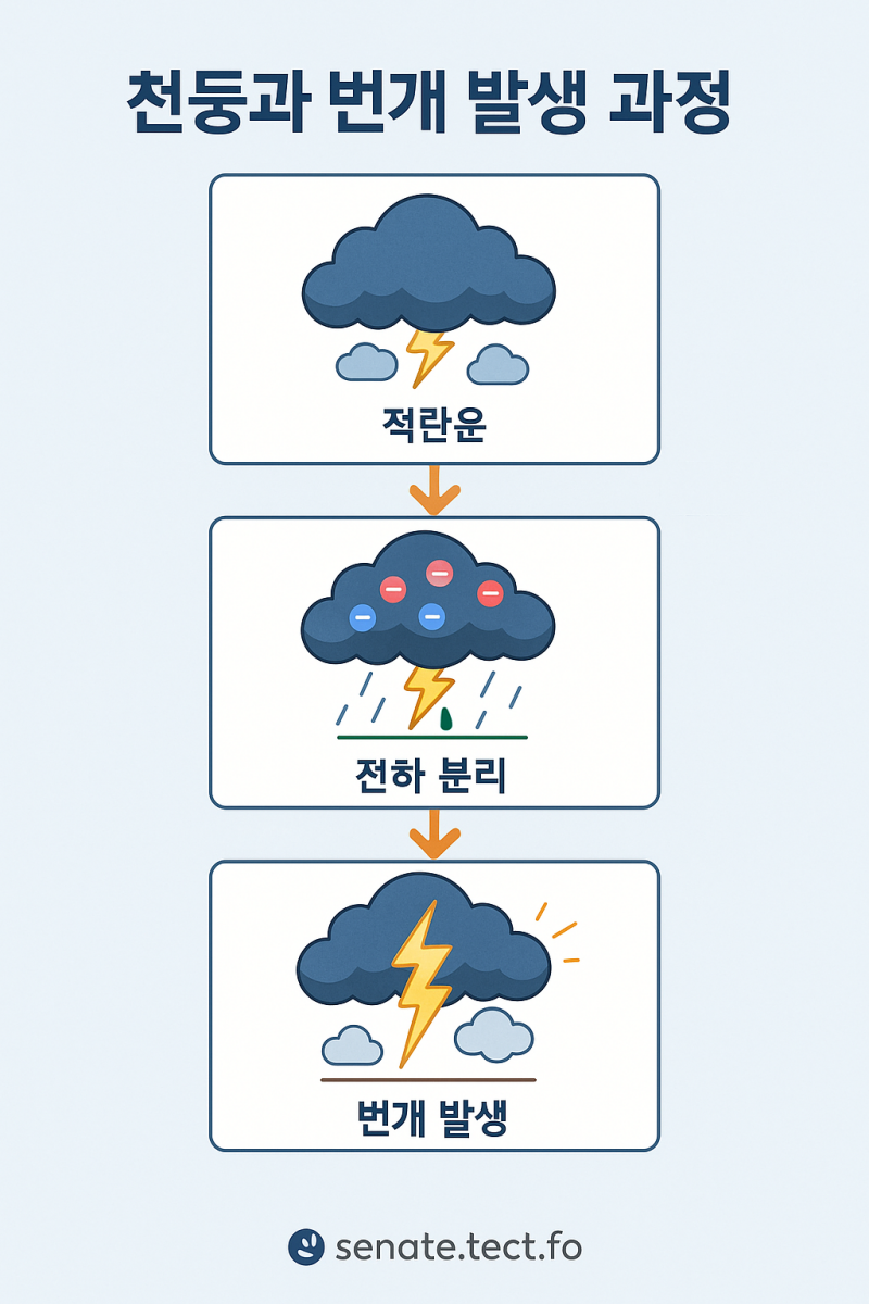천둥과 번개는 보통 '적란운(Cumulonimbus)'이라는 거대한 구름 속에서 만들어집니다. 이 구름은 상층은 얼음, 하층은 물방울로 구성되어 있고, 내부에서는 강한 상승과 하강 기류가 끊임없이 움직입니다.